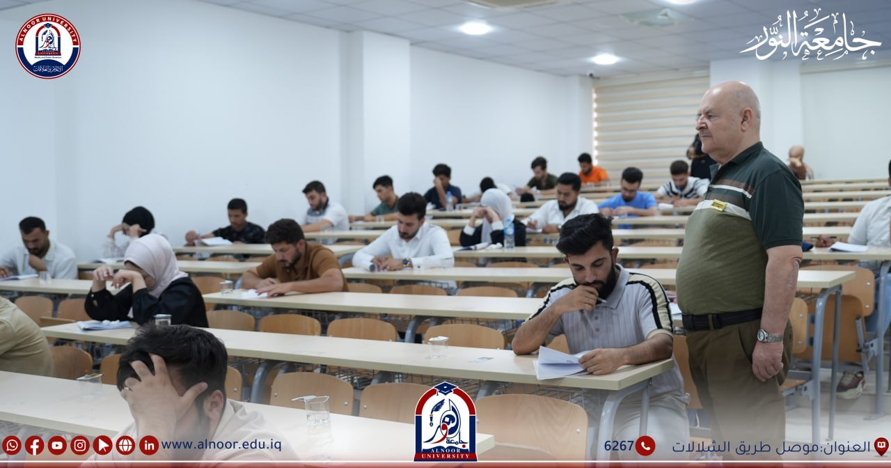 بحضور الاستاذ الدكتور ياسين طه الحجار رئيس جامعة النور واشراف ومتابعة اللجنة الامتحانية المركزية بدأت صباح يوم السبت الموافق 2024/7/6 الامتحانات النهائية لطلبة المرحلة الأولى في الكليات السبع لجامعة النور بما فيها من اقسام علمية،حيث اتسمت الامتحانات بالتنظيم الدقيق والتجهيز السليم للقاعات والتجاوب العالي المنضبط للطلبة.