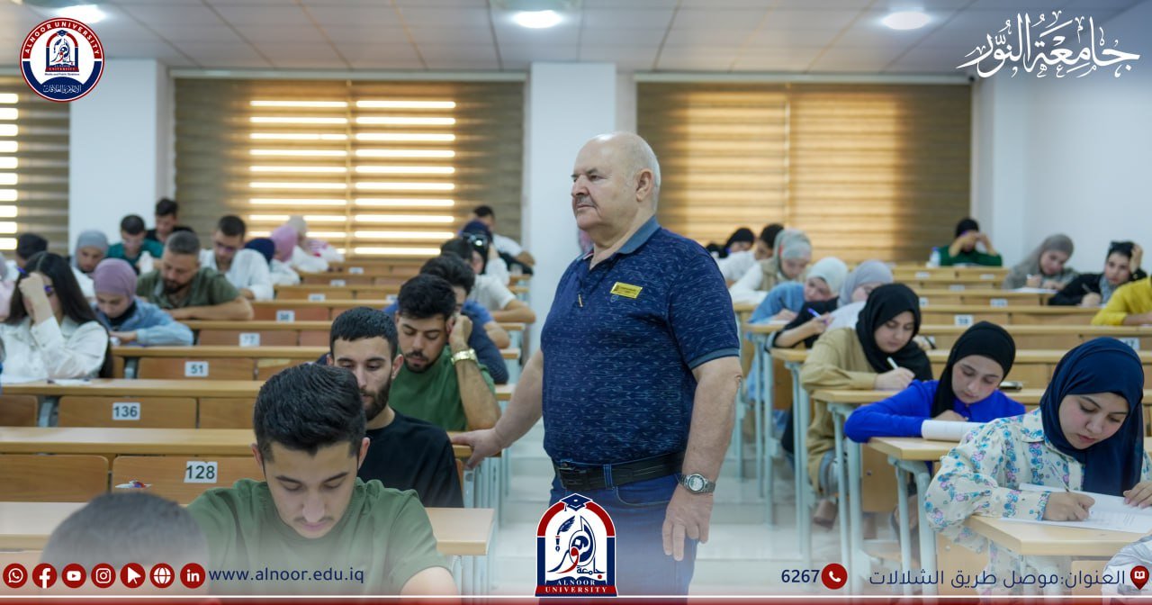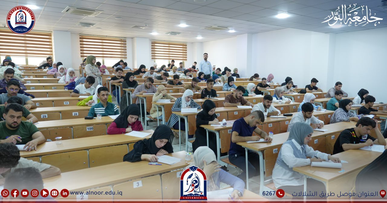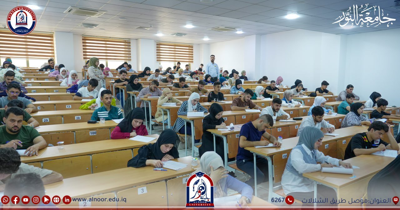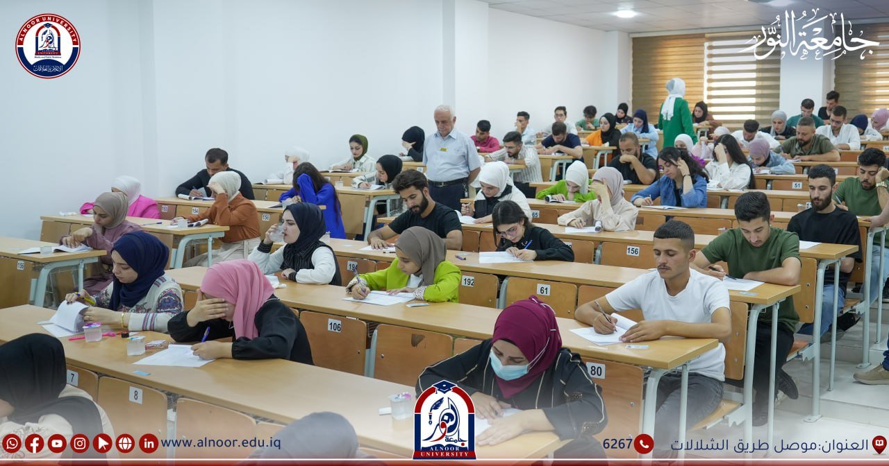 بإشراف الاستاذ الدكتور ياسين طه الحجار رئيس جامعة النور ومتابعة اللجنة الامتحانية المركزية للجامعة جرت الامتحانات النهائية لطلبة المرحلة الاولى في كليات الجامعة ليوم الأحد الموافق 2024/7/21