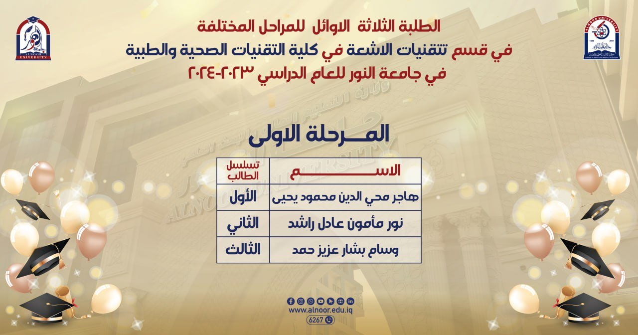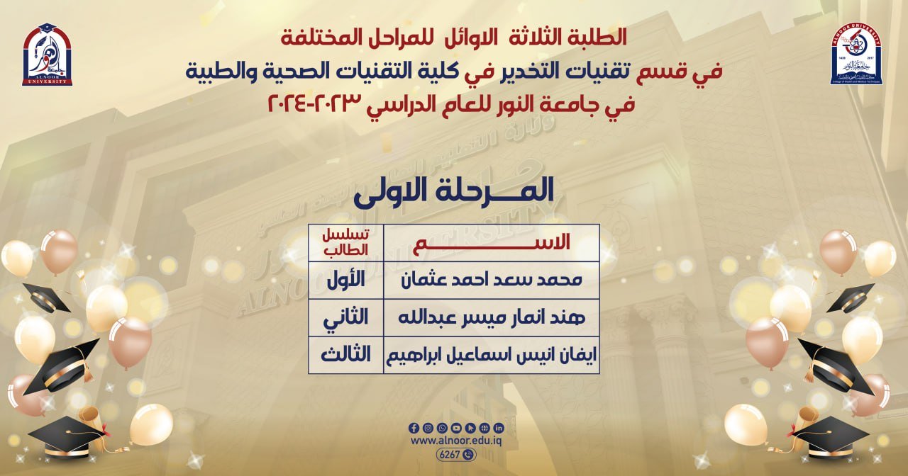 المتفوقون في المرحلة الاولى لاقسام جامعة النور