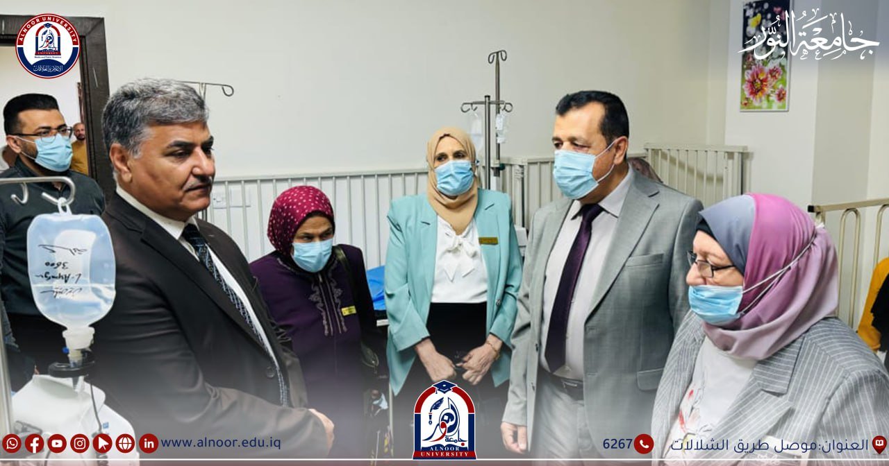 بمشاركة رئيس قسم تقنيات المختبرات الطبية في كلية التقنيات الصحية والطبية في جامعة النور نظمت لجنة الثلاسيميا في الجامعة زيارة الى مستشفى الحدباء التخصصي لأمراض الدم وزراعة نخاع العظام في ظل تخصيص شهر ايلول سنوياً لتكثيف الجهد العالمي في مواجهة سرطان الاطفال،،
