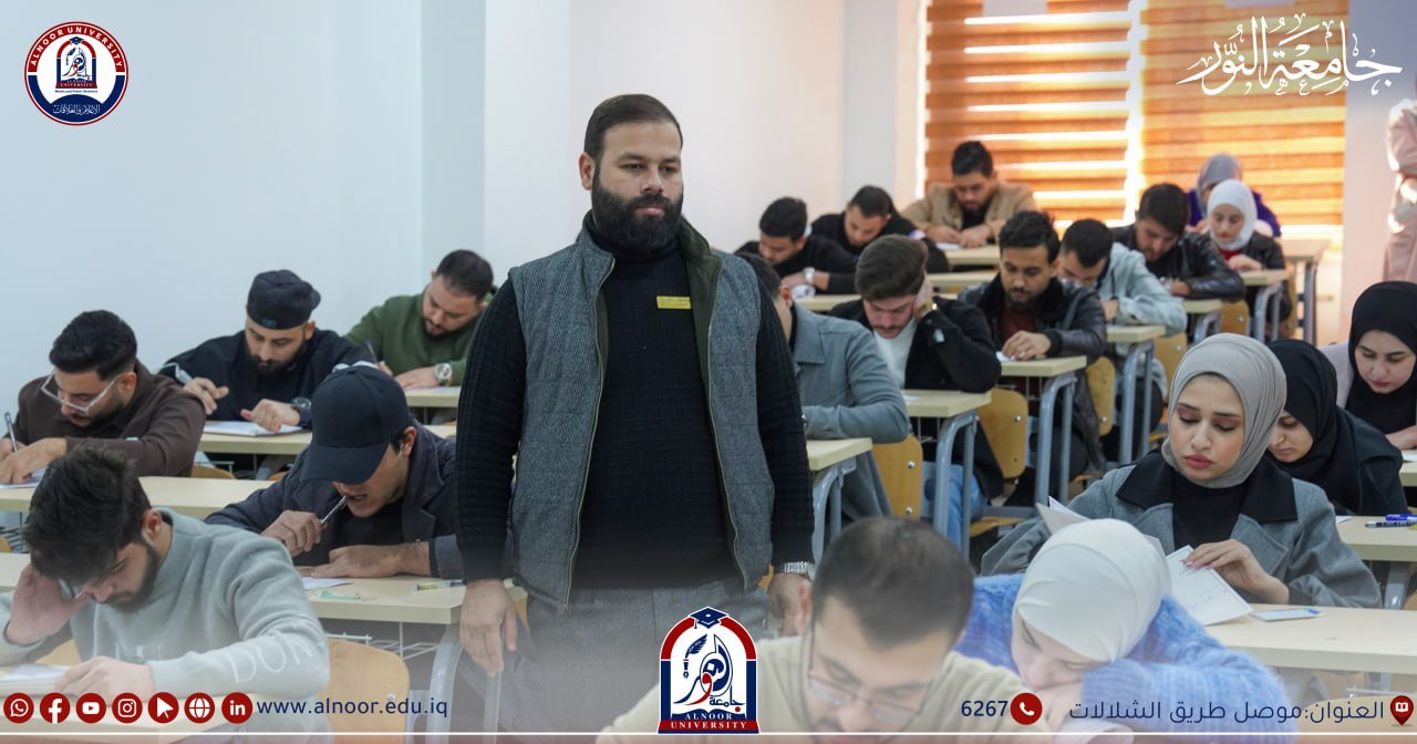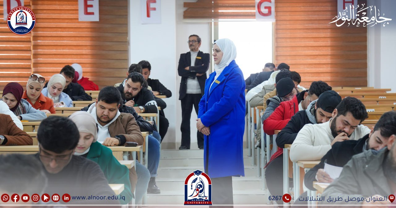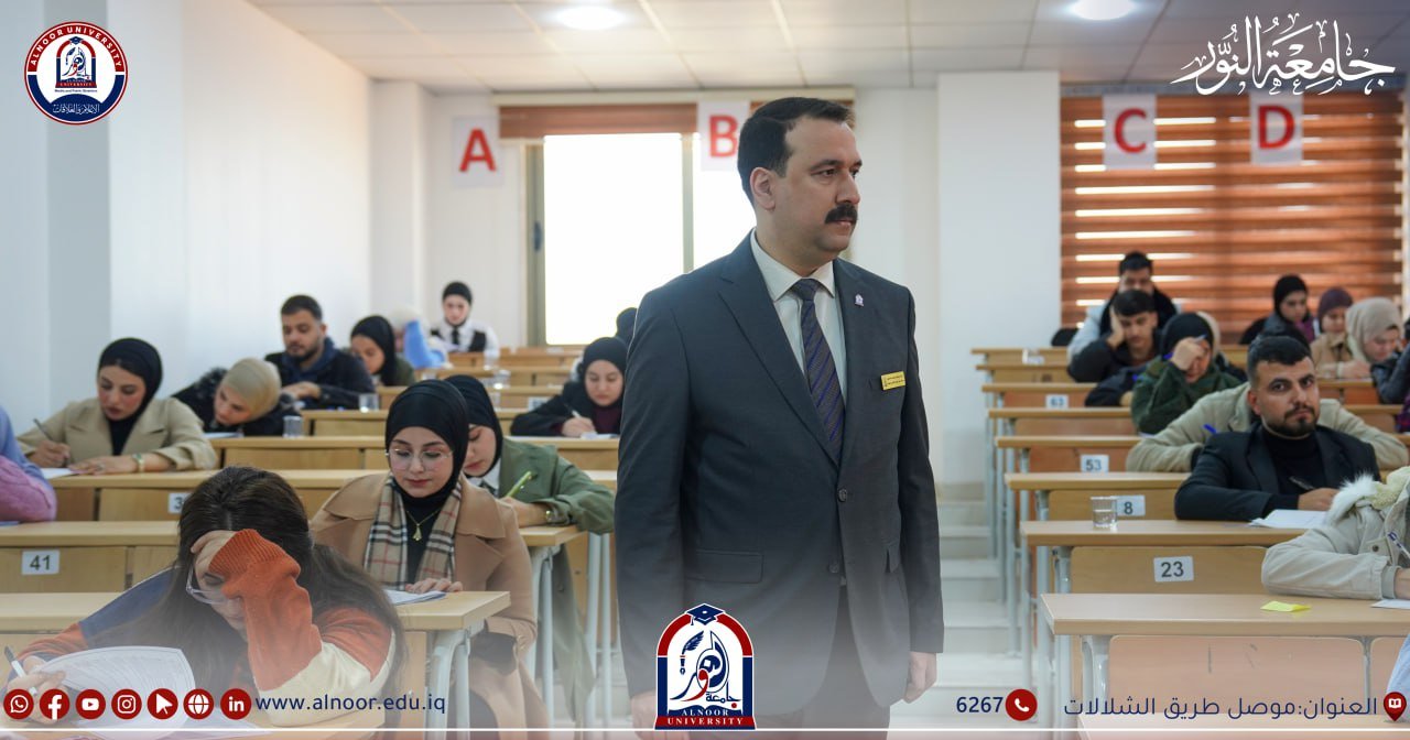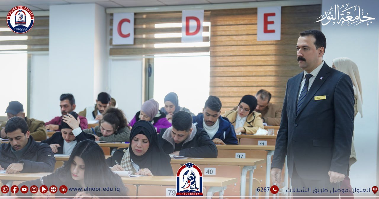 جرت امتحانات طلبة جامعة النور ليوم الخميس الموافق2024/12/19 بحضور الاستاذ المساعد الدكتور إسماعيل عبد الوهاب مساعد رئيس الجامعة للشؤون العلمية والطلبة حيث خاض امتحانات نهاية الكورس الأول طلبة المرحلتين الثالثة والخامسةفي كلية الصيدلة و طلبة المراحل الثانية والثالثة نفي اقسام تقنيات المختبرات الطبية وتقنيات الأشعة وتقنيات التخدير وتقنيات صناعة الأسنان وتقنيات البصريات ،وخاض امتحانات الفصل الأول طلبة المرحلة الرابعة في قسم تقنيات المختبرات الطبية وتقنيات الاشعة ،وخاض امتحانات نصف السنة طلبة المرحلتين الثالثة والخامسة في كلية طب الاسنان ، وطلبة المراحل الثانية والثالثة والرابعة في كلية القانون ،وطلبة المرحلة الثانية في اقسام الاعلام الرقمي و الثانية والثالثة والرابعة في قسم اللغة العربية والثانية والثالثة في قسم اللغة الانكليزية .وطلبة المرحلة الثانية في قسم هندسة النفط