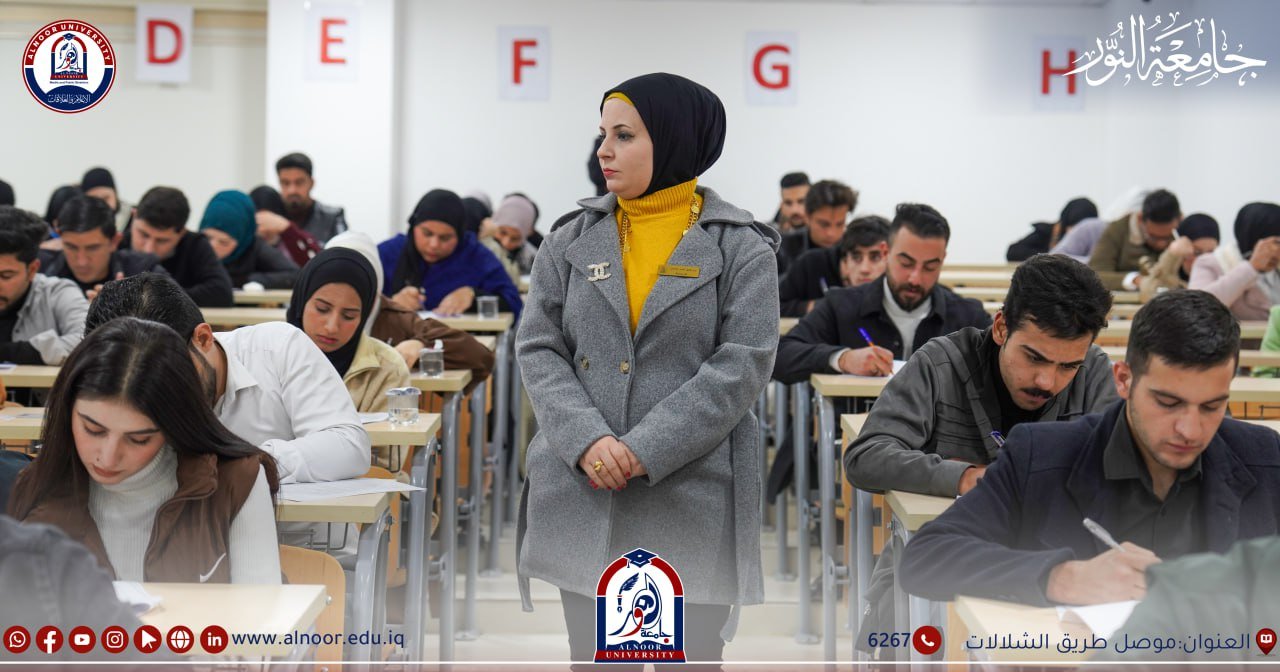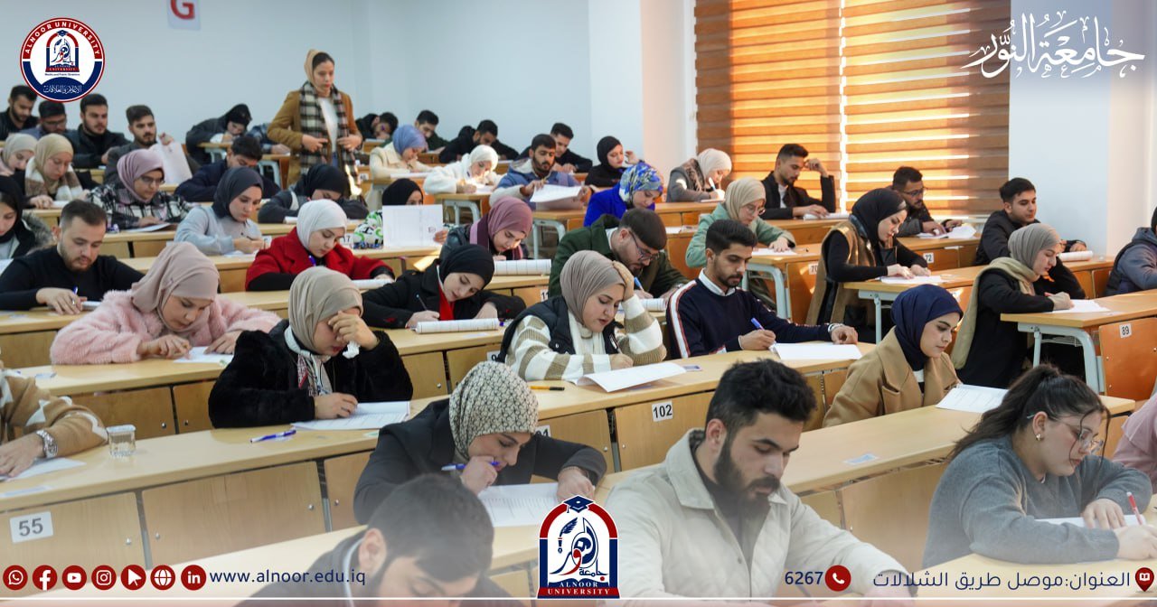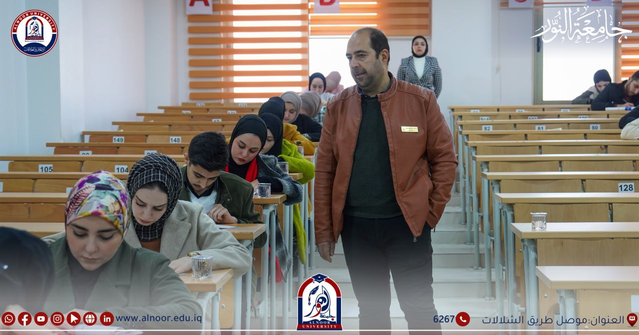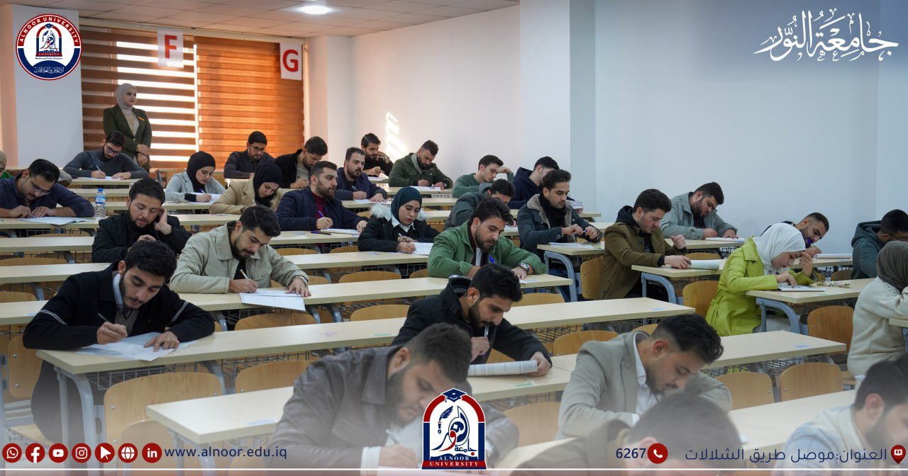 جرت امتحانات طلبة جامعة النور ليوم الخميس الموافق2024/12/19 بحضور الاستاذ المساعد الدكتور إسماعيل عبد الوهاب مساعد رئيس الجامعة للشؤون العلمية والطلبة حيث خاض امتحانات نهاية الكورس الأول طلبة المرحلتين الثالثة والخامسةفي كلية الصيدلة و طلبة المراحل الثانية والثالثة نفي اقسام تقنيات المختبرات الطبية وتقنيات الأشعة وتقنيات التخدير وتقنيات صناعة الأسنان وتقنيات البصريات ،وخاض امتحانات الفصل الأول طلبة المرحلة الرابعة في قسم تقنيات المختبرات الطبية وتقنيات الاشعة ،وخاض امتحانات نصف السنة طلبة المرحلتين الثالثة والخامسة في كلية طب الاسنان ، وطلبة المراحل الثانية والثالثة والرابعة في كلية القانون ،وطلبة المرحلة الثانية في اقسام الاعلام الرقمي و الثانية والثالثة والرابعة في قسم اللغة العربية والثانية والثالثة في قسم اللغة الانكليزية .وطلبة المرحلة الثانية في قسم هندسة النفط