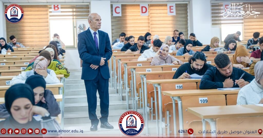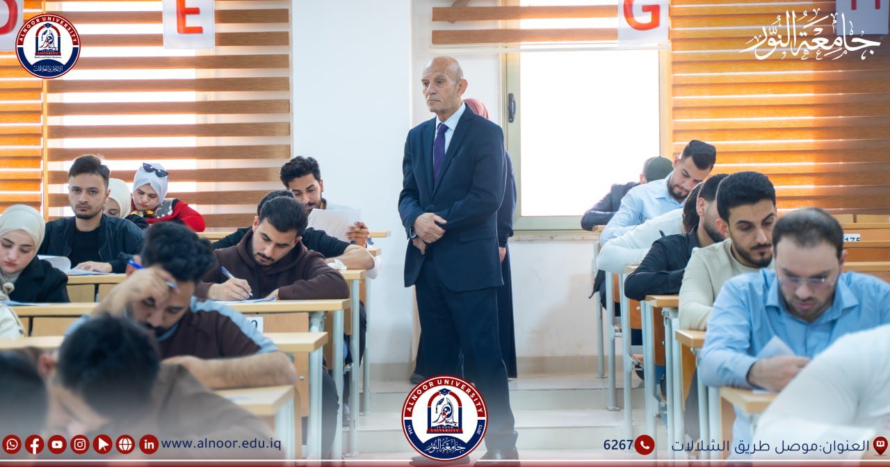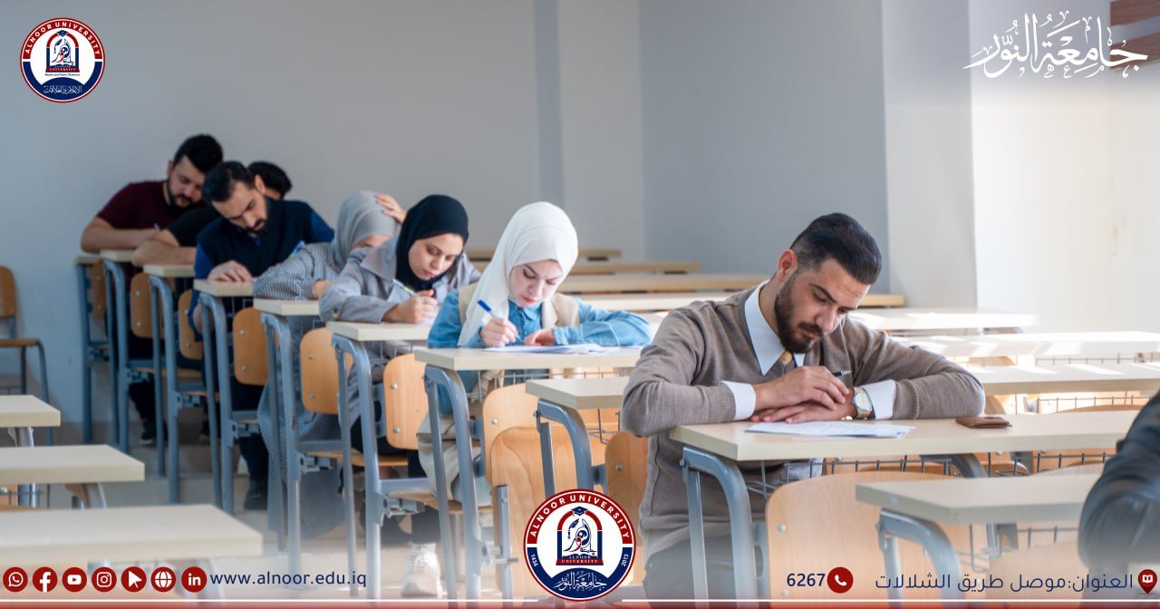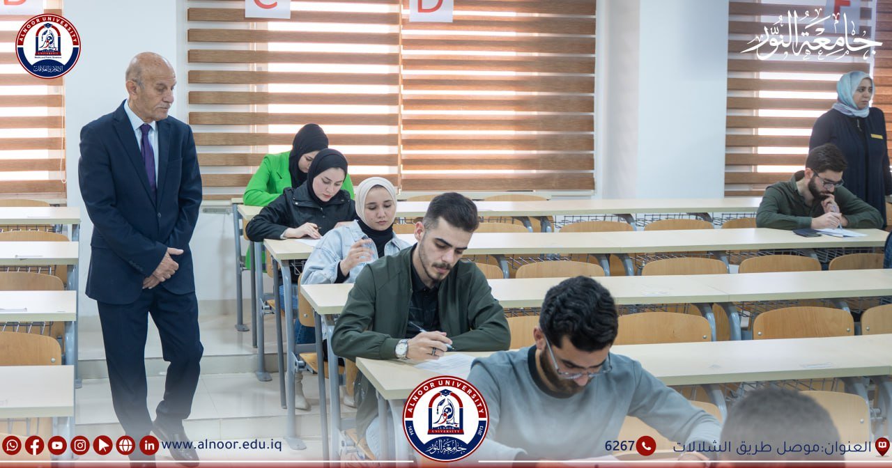 بحضور الأستاذ الدكتور ياسين طه الحجار رئيس جامعة النور جرت الامتحانات الفصلية لطلبة كليتي الصيدلة والتقنيات الصحية والطبية في الجامعة ليوم السبت الموافق 2025/3/22 حيث خاض امتحانات منتصف الكورس الثاني والفصل الثاني حسب نظام الدراسة طلبة المرحلتين الثالثة والخامسة في كلية الصيدلة وطلبة المرحلتين الثانية والرابعة في أقسام تقنيات المختبرات الطبية وتقنيات الاشعة وتقنيات صناعة الاسنان والمرحلة الثالثة في قسمي تقنيات البصريات وتقنيات التخدير في كلية التقنيات الصحية والطبية