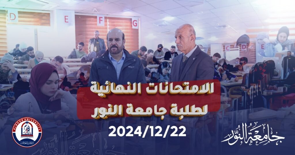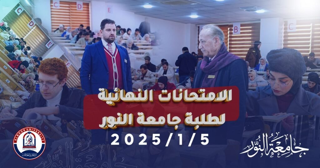 بإشراف رئيس جامعة النور الأستاذ الدكتور ياسين طه الحجار جرت امتحانات يوم الاحد الموافق 2025/1/5 وهو اليوم الأخير للامتحانات حيث