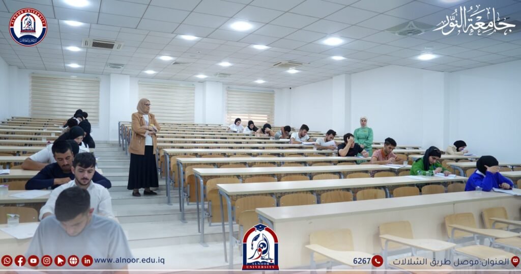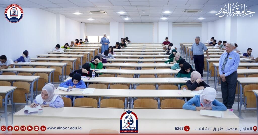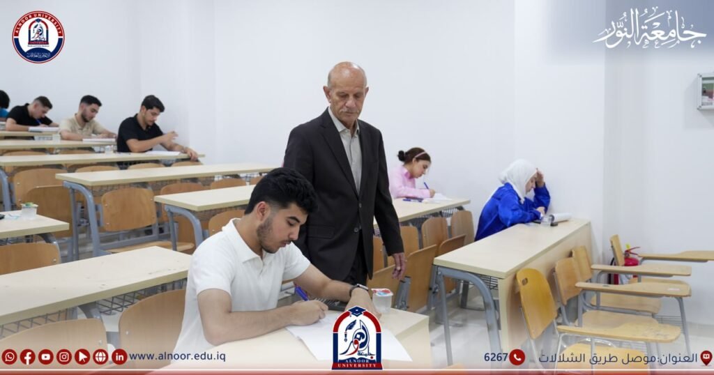 باشراف الاستاذ الدكتور ياسين طه الحجار رئيس جامعة النور ومتابعة اللجنة الامتحانية المركزية لجامعة النور جرت الامتحانات النهائية لطلبة المرحلة