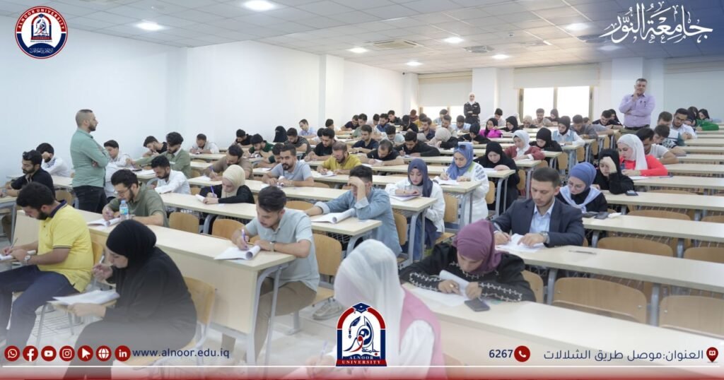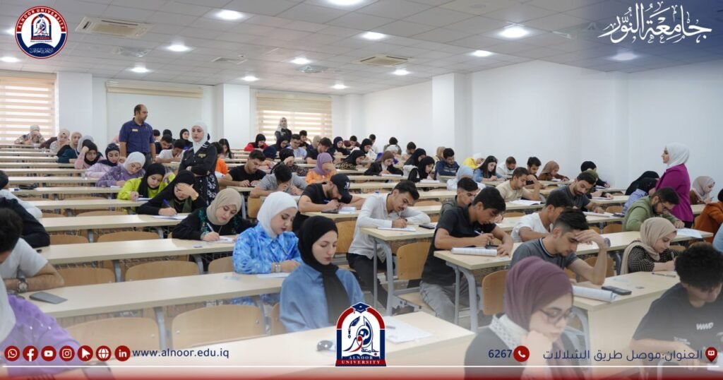 بإشراف مباشر من اللجنة الامتحانية المركزية لجامعة النور جرت الامتحانات النهائية لطلبة المرحلة الاولى في كليات الجامعة الامتحانات النهائية ليوم