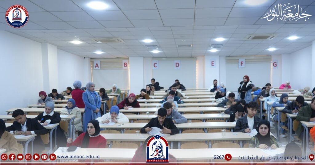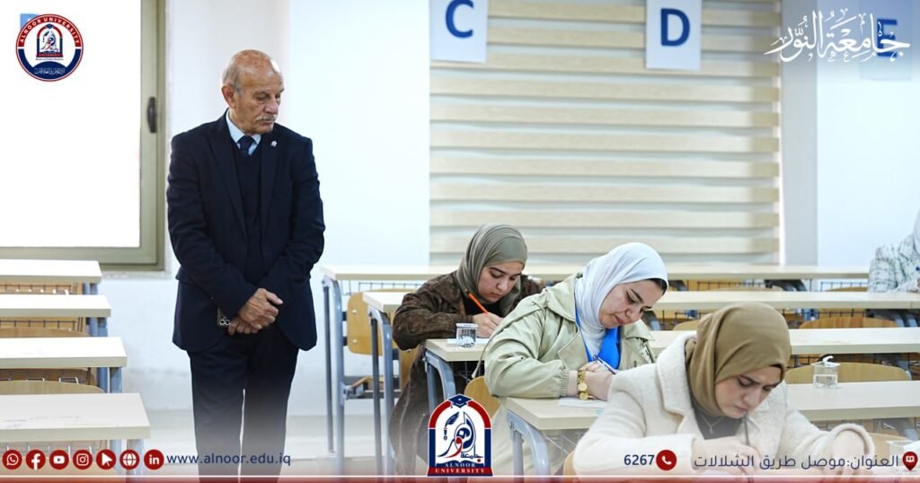 باشراف مباشر من الاستاذ الدكتور ياسين طه الحجار رئيس جامعة النور ومتابعة اللجنة الامتحانية المركزية جرت الامتحانات النهائية في يوم